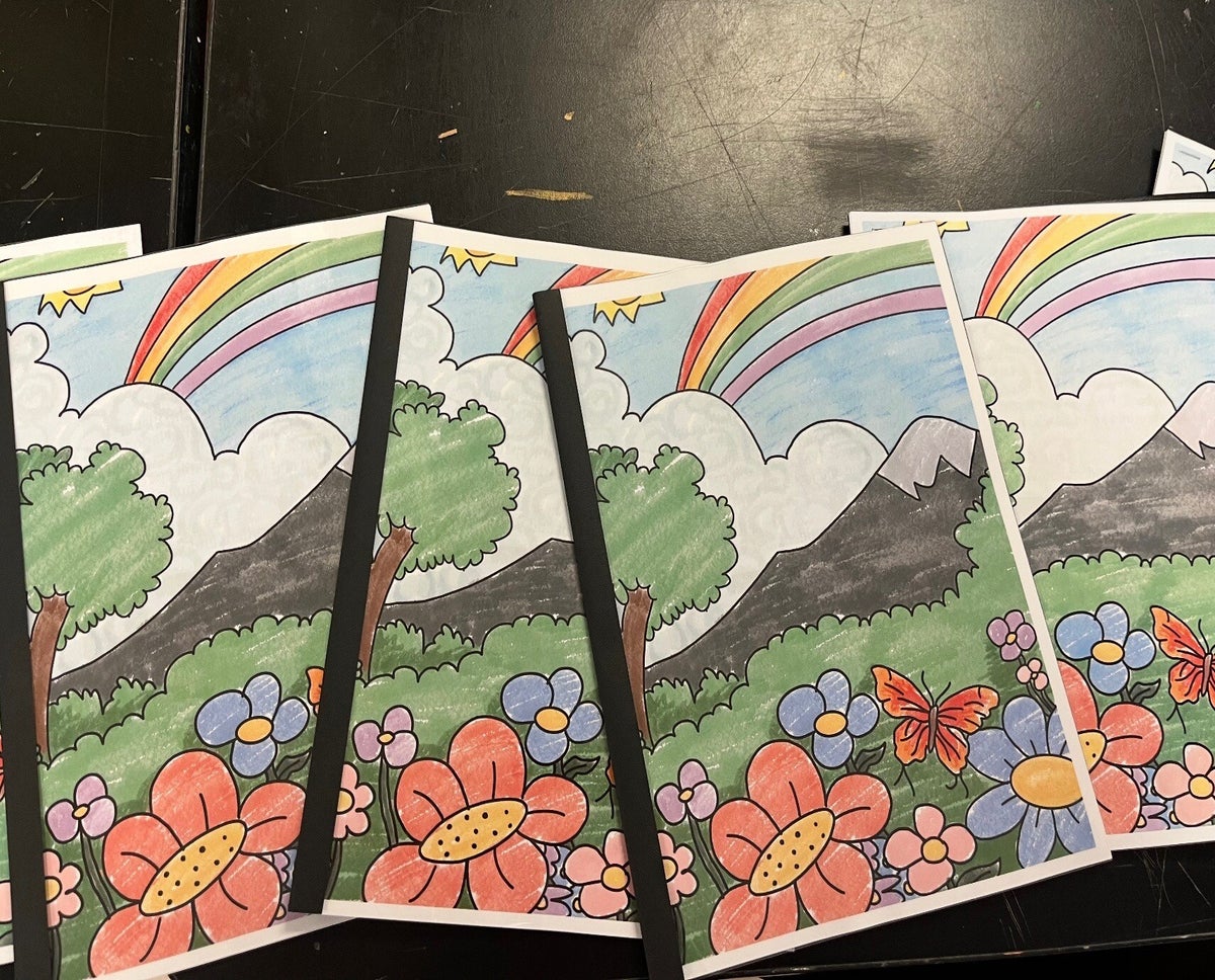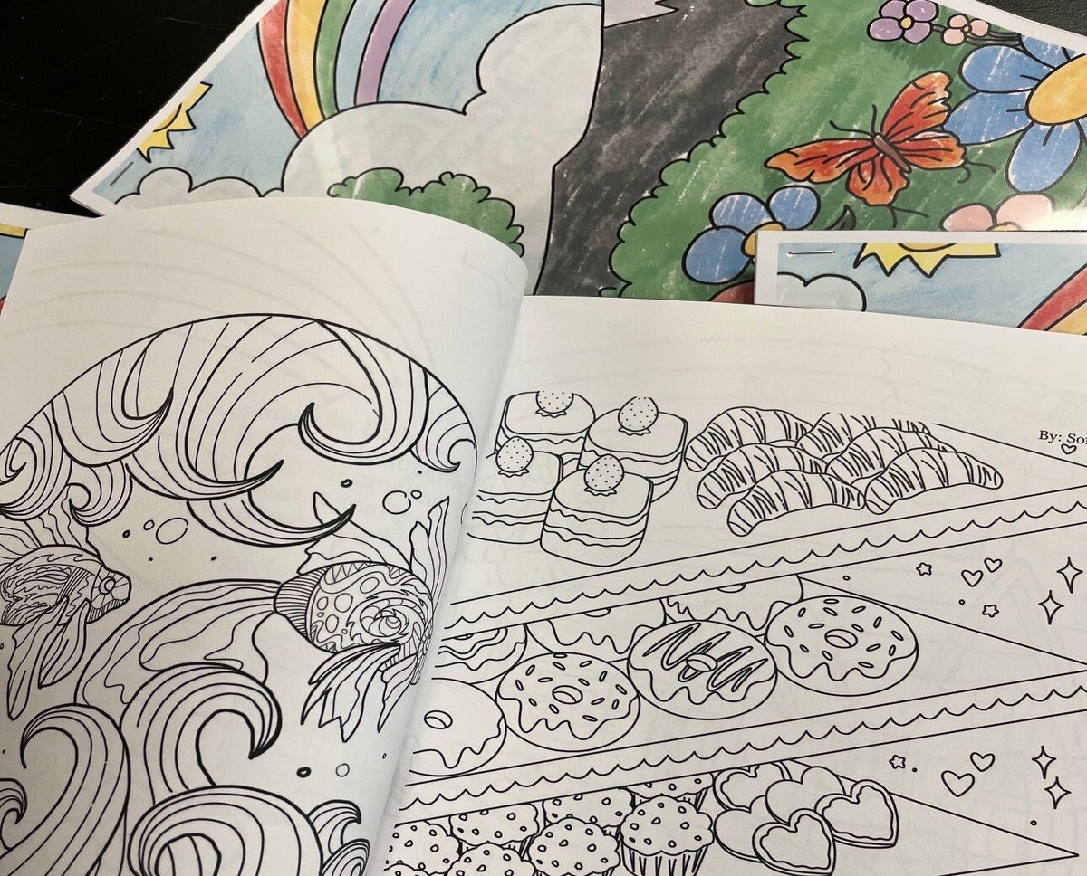 These feature original line art created by student volunteers. Each page is one-of-a-kind, bringing patients joy and creativity.